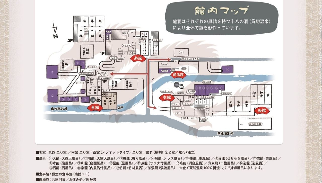 龍洞の貸切風呂を効率的に廻るには、どのお風呂に優先して入るか、事前に計画を立てた方がいいですね。この計画を立てるということも龍洞ならではのワクワクする醍醐味です。